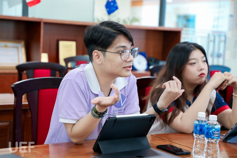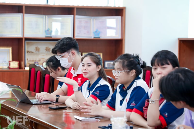 Attending and discussing with the student delegation were Dr. Phan Bao Giang - Dean, Faculty of Marketing; Ms. Huynh Tu Anh - Deputy Dean, Faculty of Marketing; Ms. Ha Le Thu Hoai - Deputy Director, Center of Project Design Education.