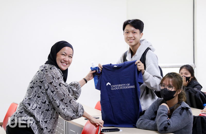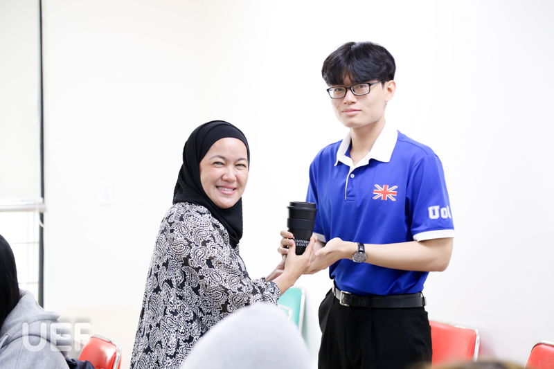 The event was further enlivened by Ms. Dho'un Azahari's “branded” gifts from UoG to the students. To receive these gifts, UEFers also showed their dynamism and intelligence to impress the international guests. The activity fostered a sense of international connection and boosted the students' confidence and self-assurance.