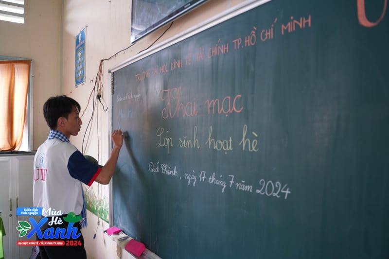 Bên cạnh đó, lớp sinh hoạt hè cho những học sinh Trường Tiểu học Quới Thành cũng được mở ra. Có thể nói, hình ảnh các em say sưa học tập, chăm chú lắng nghe, những ánh mắt trẻ thơ đong đầy niềm vui, hào hứng nhìn lên bảng đen chính là món quà vô giá, là nguồn động lực to lớn cho các chiến sĩ Nhà UEF.