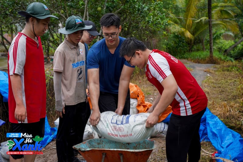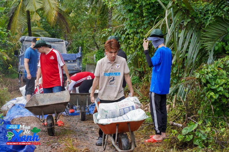 Những hoạt động ý nghĩa đầu tiên của Mùa hè xanh UEF 2024 tại mặt trận tỉnh Bến Tre Ngày 18/7, thời tiết ở xã Quới Thành không thuận lợi nhưng điều đó không thể ảnh hưởng đến tinh thần nhiệt huyết của các chiến sĩ Mùa hè xanh UEF. Các bạn đã tích cực vận chuyển 150 bao xi măng, chuẩn bị nguồn lực để sẵn sàng tiến hành khởi công công trình bê tông hóa tuyến đường nông thôn vào ngày 20/7 tới đây.
