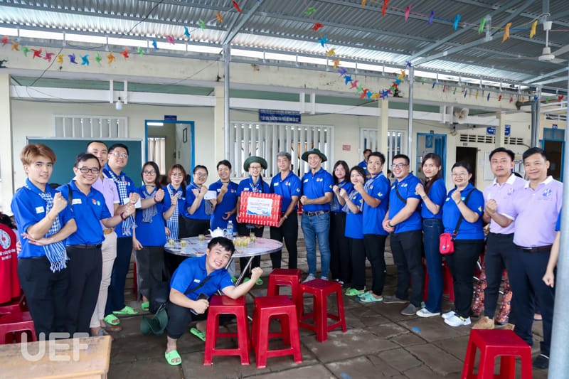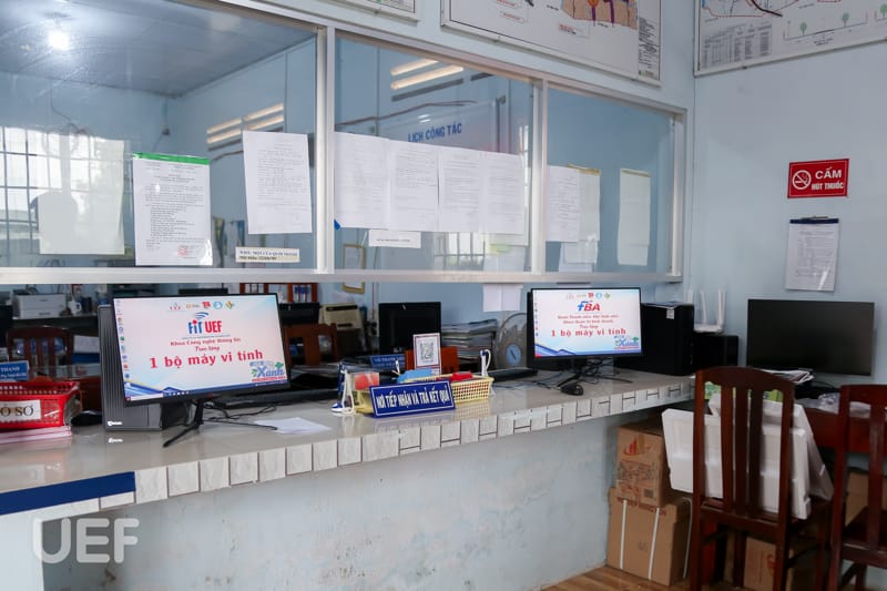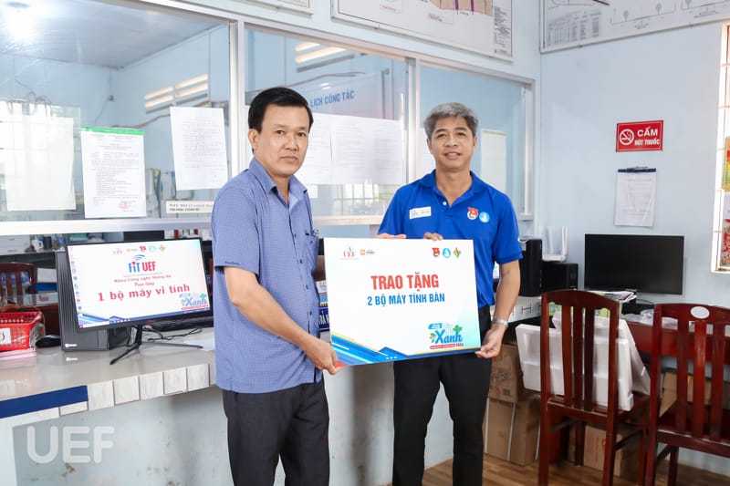 Đại diện UEF bàn giao 2 bộ máy vi tính cho UBND xã Quới ThànhĐại diện lãnh đạo địa phương, ông Nguyễn Hữu Tài - Phó Bí thư Đảng ủy - Chủ tịch UBND xã Quới Thành gửi lời cảm ơn đến Nhà trường và Bệnh viện Hùng Vương đã đến hỗ trợ để người dân được chăm sóc sức khoẻ. Đây là món quà đáng quý, góp phần trong công tác an sinh xã hội của địa phương. Các bạn chiến sĩ UEF cũng đã đóng góp rất nhiều trong các hoạt động, người dân rất phấn khởi và ủng hộ chiến dịch.