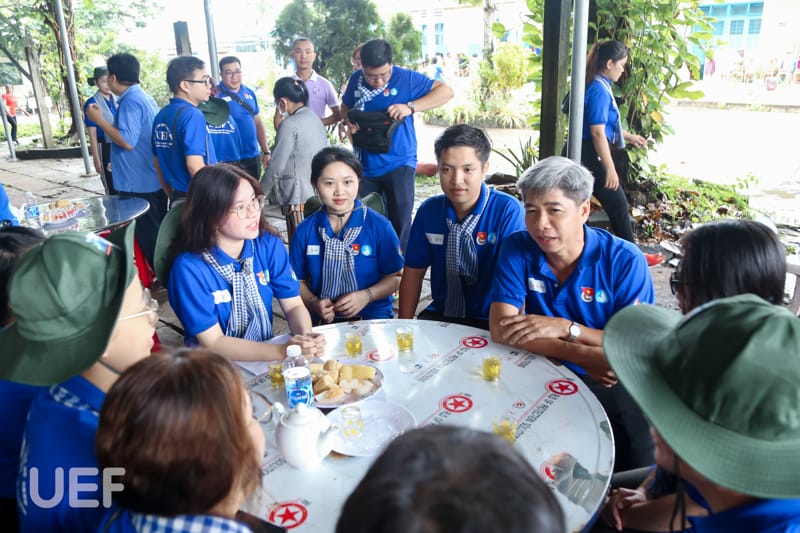 Thay mặt Nhà UEF, TS. Nguyễn Thanh Giang đã chuyển lời động viên của các thầy, cô đến các chiến sĩ tình nguyện tại mặt trận Bến Tre. Với tinh thần vừa cống hiến, vừa học hỏi, thầy đánh giá cao các chiến sĩ khi đã thực hiện tốt nhiều nhiệm vụ, được người dân địa phương quý mến. Đồng thời, thầy cũng nhắn nhủ các chiến sĩ cần đảm bảo sức khỏe và tiếp tục rèn luyện trong thời gian đóng quân.