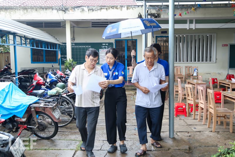 Thầy cô UEF cũng đến thăm các gia đình ở địa phương đã cho các chiến sĩ lưu trú và sinh hoạt