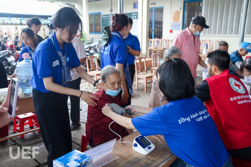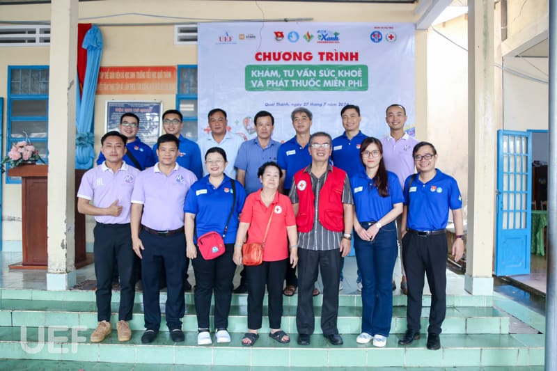 Cùng ngày, đội hình tình nguyện Mùa hè xanh UEF cũng đã phối hợp với Hội chữ thập đỏ Bệnh viện Hùng Vương thực hiện chương trình “Khám, cấp phát thuốc cho 300 bà con xã Quới Thành”.