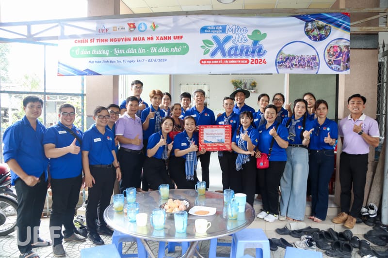 Ngày 27/7 vừa qua, đoàn lãnh đạo Nhà UEF đã có chuyến thăm và trao quà khích lệ các chiến sĩ tình nguyện Mùa hè xanh đang hoạt động tại mặt trận xã Quới Thành, huyện Châu Thành, tỉnh Bến Tre. Đồng thời, đoàn thầy, cô UEF cùng các chiến sĩ đã đến thăm và tặng quà cho 5 hộ gia đình thương binh, liệt sĩ, có công với cách mạng ở xã Quới Thành nhân kỷ niệm 77 năm ngày Thương binh - Liệt sĩ 27/7.