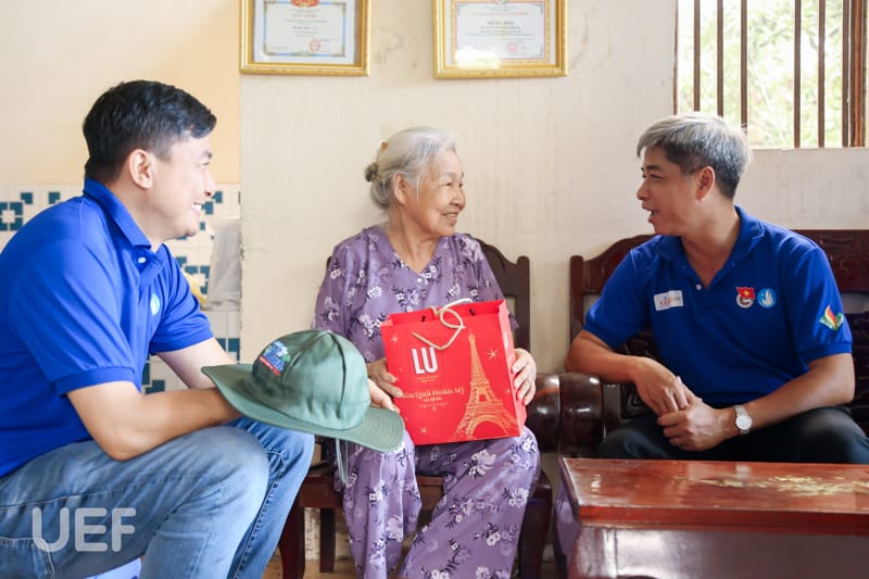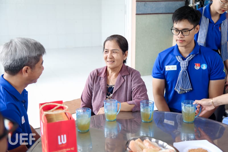 Nối tiếp các hoạt động ý nghĩa, đoàn thầy, cô UEF cùng các chiến sĩ đã đến thăm và tặng quà cho 5 hộ gia đình thương binh, liệt sĩ, có công với cách mạng ở xã Quới Thành. Ngoài ra, các thầy cô cũng đến thăm 3 gia đình ở địa phương đã cho các chiến sĩ lưu trú và sinh hoạt trong thời gian thực hiện chiến dịch.