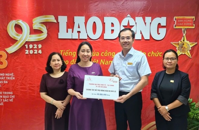 Đại diện UEF đảm nhận các công tác liên quan đến hoạt động này, TS. Hồ Viễn Phương – Phó Hiệu trưởng Nhà trường cho biết: “Khi biết thông tin về thiệt hại do cơn bão số 3 (Bão Yagi) và lũ lụt gây thiệt hại nặng cho người dân một số tỉnh, thành phía Bắc, lãnh đạo, tập thể giảng viên, sinh viên của nhà trường đã rất xúc động và lãnh đạo Nhà trường đã nhanh chóng phát động phong trào quyên góp ủng hộ đồng bào bị ảnh hưởng bởi bão, lũ lụt”.