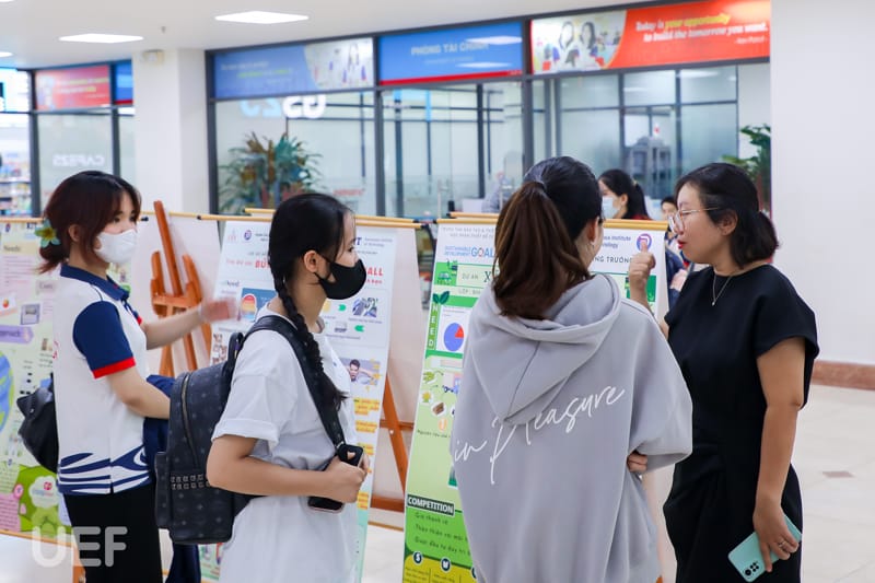 Bên cạnh đó, tại sự kiện còn có các phiên thảo luận giữa sinh viên và giảng viên, chuyên gia trong lĩnh vực đô thị tăng trưởng xanh. Thông qua quá trình trao đổi, UEFers có thể làm rõ những điểm nổi bật trong dự án của mình đồng thời được học hỏi, tích lũy kinh nghiệm để tạo ra nhiều công trình chất lượng hơn trong tương lai.