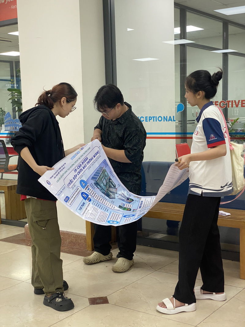 Nối tiếp tinh thần đó, vào ngày 27/6, Trung tâm Đào tạo thiết kế dự án UEF đã tổ chức phiên triển lãm công bố các poster sáng tạo của sinh viên học phần Project Design 2 - Project Design Show với chủ đề: Đổi mới sáng tạo hướng tới đô thị tăng trưởng xanh. Phiên triển lãm trong học kỳ 2B, năm học 2023 - 2024 lần này có sự tham gia của 22 dự án mới mẻ, độc đáo đến từ các nhóm sinh viên thuộc nhiều ngành học khác nhau của Nhà trường. Với hàng loạt poster được thiết kế sinh động, khu vực trưng bày sản phẩm đã nhanh chóng thu hút đông đảo sinh viên và giảng viên đến tham quan, tìm hiểu.