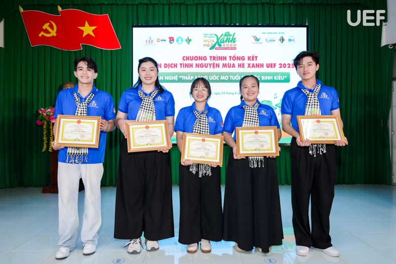 Với sự đoàn kết và tinh thần nhiệt huyết, các chiến sĩ tình nguyện UEF đã thực hiện nhiều công trình, phần việc, chương trình ý nghĩa và hoàn thành xuất sắc nhiệm vụ do Ban chỉ huy đề ra. Trong buổi tổng kết, các cá nhân cùng tập thể đạt thành tích trong hoạt động tình nguyện Mùa hè xanh UEF 2025 cũng đã được tuyên dương và khen thưởng.