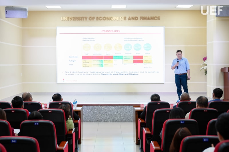 Phát biểu khai mạc, TS. Nhan Cẩm Trí đã nhấn mạnh tầm quan trọng của việc ứng phó với biến đổi khí hậu, phát triển bền vững và xu hướng năng lượng xanh trong tương lai, trong đó công nghệ hydro được xem là giải pháp chiến lược. Lãnh đạo UEF cũng khẳng định, sự kiện không chỉ là dịp để các nhà khoa học, doanh nghiệp và sinh viên trao đổi học thuật mà còn góp phần mở ra định hướng hợp tác nghiên cứu, chuyển giao công nghệ, thúc đẩy các sáng kiến phát triển năng lượng sạch tại Việt Nam và khu vực.