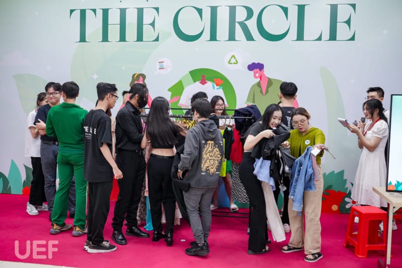 Phát huy tinh thần đó, vào ngày 27/10, Trung tâm Kết nối cộng đồng (KNCĐ) UEF phối hợp cùng Tổ chức Urban Circular Space Saigon (UCS) triển khai sự kiện “The Circle - Thời trang tuần hoàn”. Với đa dạng các hoạt động xoay quanh thời trang và môi trường, chương trình đã lan tỏa nhiều góc nhìn, thông điệp ý nghĩa đến các bạn sinh viên Nhà UEF.
