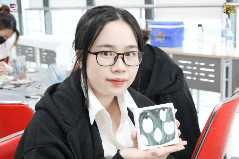 Workshop #1 - “Hy vọng” là điểm khởi đầu đầy hứng khởi cho hành trình "Gom sắc màu, góp yêu thương". Workshop đã được tổ chức ngày 14/03 với sự hưởng ứng tích cực từ 63 sinh viên. Không gian workshop tràn ngập tiếng cười khúc khích, tiếng cọ vẽ lướt nhẹ trên những bức tranh canvas, tiếng màu quẹt trên những chiếc bình nước, túi tote và chậu cây. Từng nét vẽ, từng mảng màu như hòa quyện vào nhau, vẽ nên bức tranh yêu thương rực rỡ, nơi mỗi sản phẩm là một lời nhắn nhủ về tình yêu thương và ý thức bảo vệ môi trường.