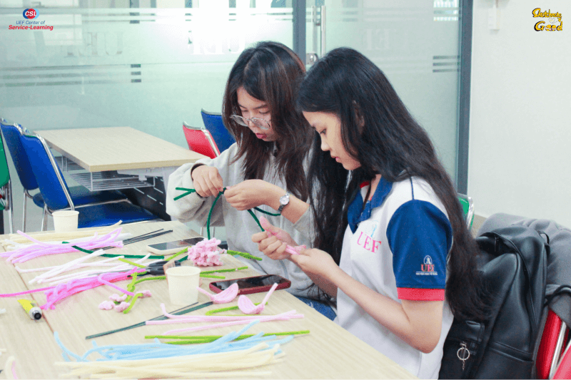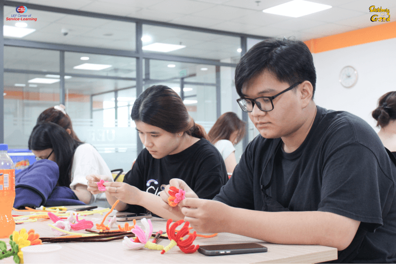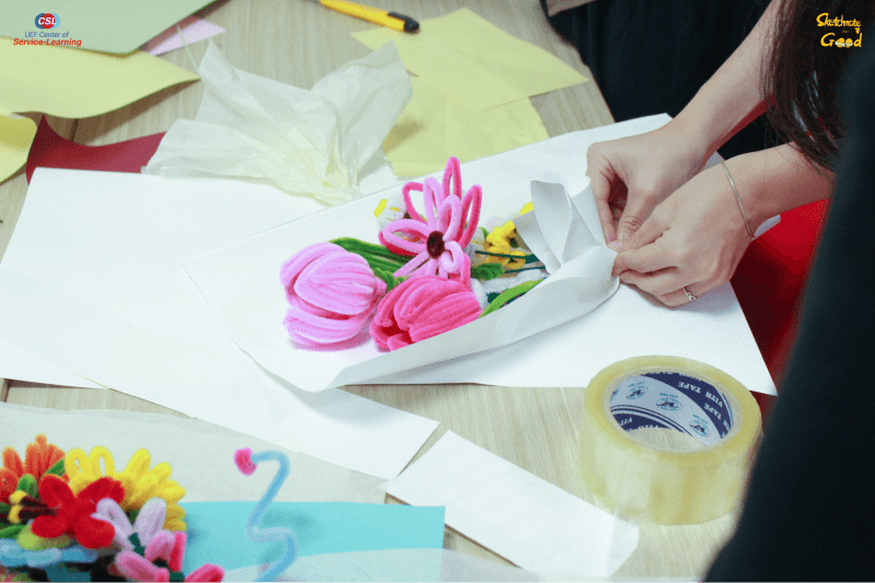 Workshop #3 - “Khát vọng” được tổ chức ngày 15/05 với 29 bạn sinh viên - là dấu ấn đẹp đẽ khép lại hành trình "Gom sắc màu, góp yêu thương". Từng sợi kẽm nhung được uốn nắn, tạo hình thành những bó bông đầy xinh đẹp nhưng không kém phần sáng tạo. không gian trò chuyện rôm rả, chia sẻ ý tưởng, vừa cùng nhau trang trí kẽm nhung, tạo nên bầu không khí vui vẻ, náo nhiệt của các bạn sinh viên như tiếp thêm động lực cho Sketchnote for Good tiếp tục thực hiện sứ mệnh gieo mầm yêu thương và lan tỏa giá trị tốt đẹp đến cộng đồng.