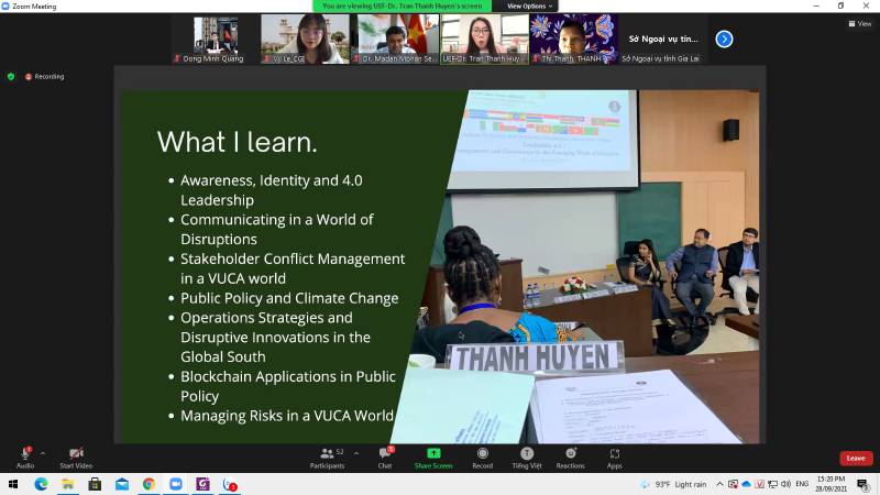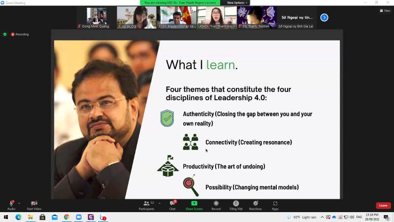 Starting the speech, Dr. Tran Thanh Huyen has expressed respect to the people and nature of India because this place is the cradle of human civilization, religious diversity, and the land of myths. This was followed by sharing her memorable experiences and memories while attending the course in India. There are four main topics discussed in the course: authenticity, connectivity, productivity, and possibility to the role of a leader. In addition, the learning method that combines exchange and discussion with field visits has contributed to providing her as well as other students with more useful knowledge in many aspects such as public policy, climate change, operational strategies, on the other hand practical activities create cohesion among the members of the course. Since then, Ms. Huyen has summarized what she has learned in the course about how to think like a leader, the spirit of curiosity, and always learn at any time, anywhere. Concluding his speech, Dr. Tran Thanh Huyen shared interesting experiences about the people, food and culture of India while studying in this country.