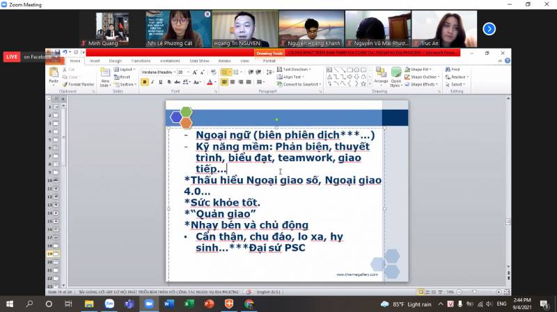 Students should hone their foreign language skills, especially second language, and accumulate in-depth knowledge in their favorite field. In addition, they need to have soft skills such as: critical thinking, presentation, teamwork, understanding digital diplomacy, diplomacy 4.0, good health, management, acumen, foresight.