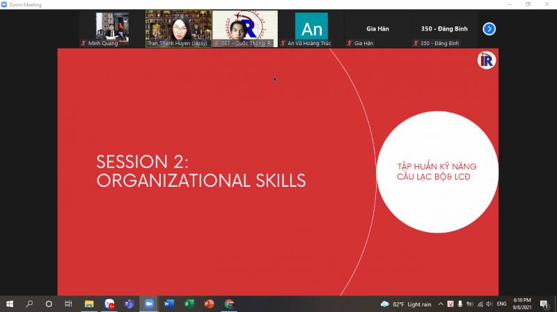This is the 2nd training session in the Club's Board and Executive Committee of the Union training course of the Faculty of International Relations. The training session took place at 18:00, Wednesday, September 8, 2021, by online form via the Zoom platform.
