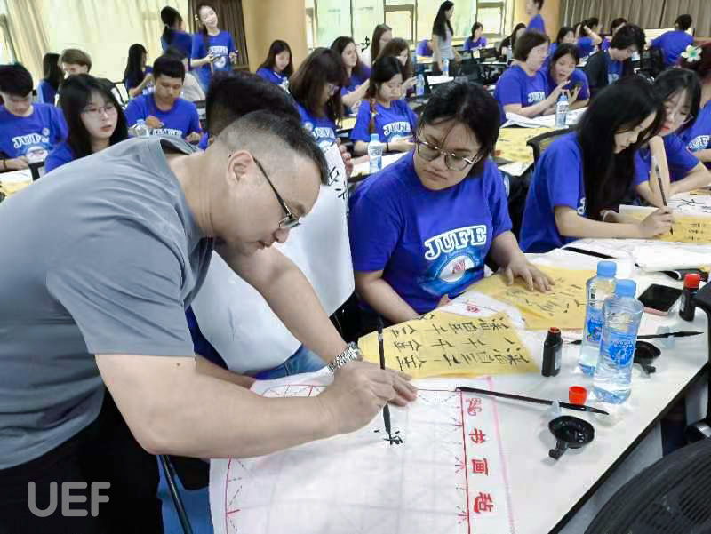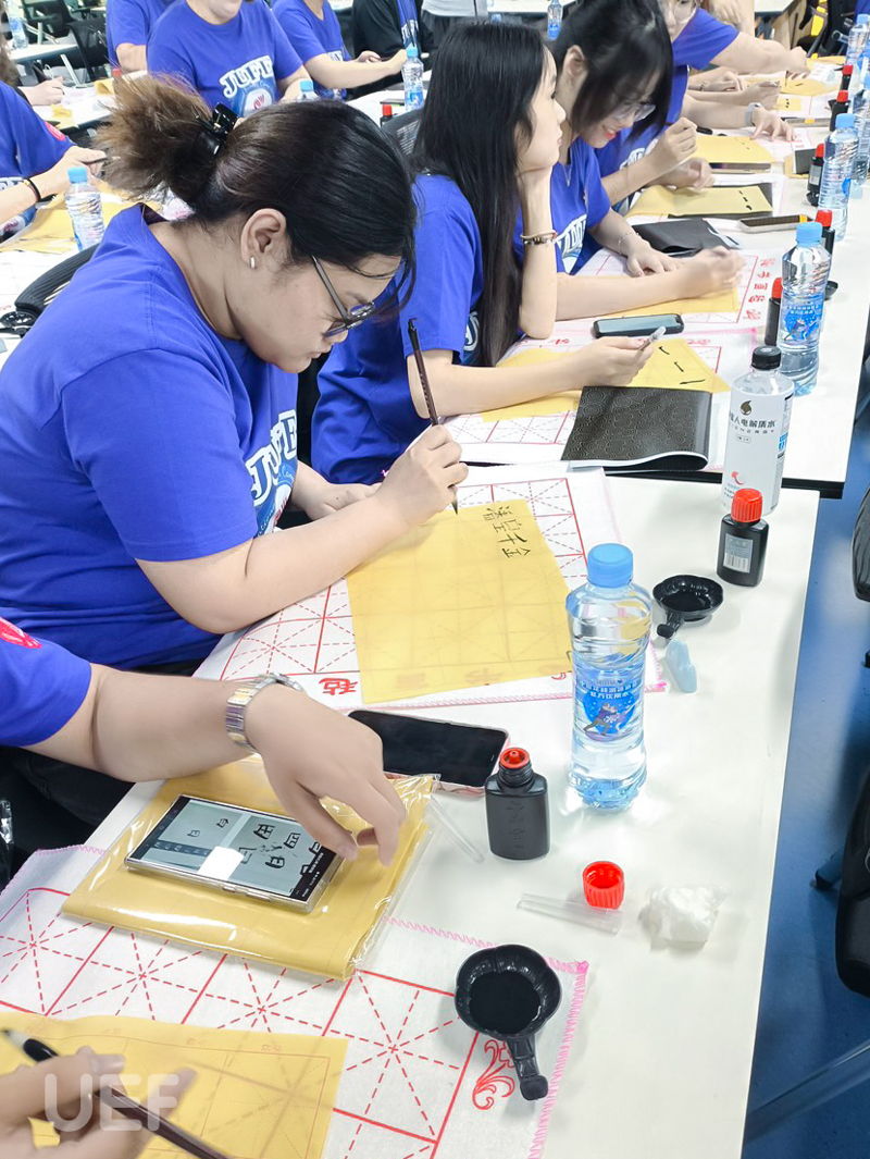 Besides, UEFers also immersed themselves in hands-on activities related to Chinese Kungfu, tea brewing artistry, Chinese decorative knots, and Chinese calligraphy. The program was made even more engaging with excursions to numerous sites, including Wanxiang Park, Jingdezhen China Ceramics Museum, Baishui Waterfall, Haihunhou Museum, Wanshou Palace, Tengwang Tower, and Qiushui Square, etc.