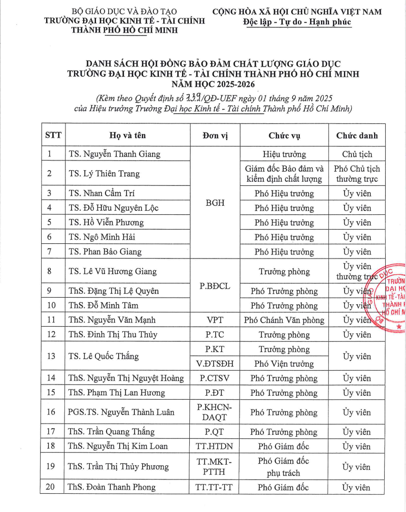 Hội đồng Bảo đảm chất lượng giáo dục Trường Đại học Kinh tế - Tài chính Thành phố Hồ Chí Minh