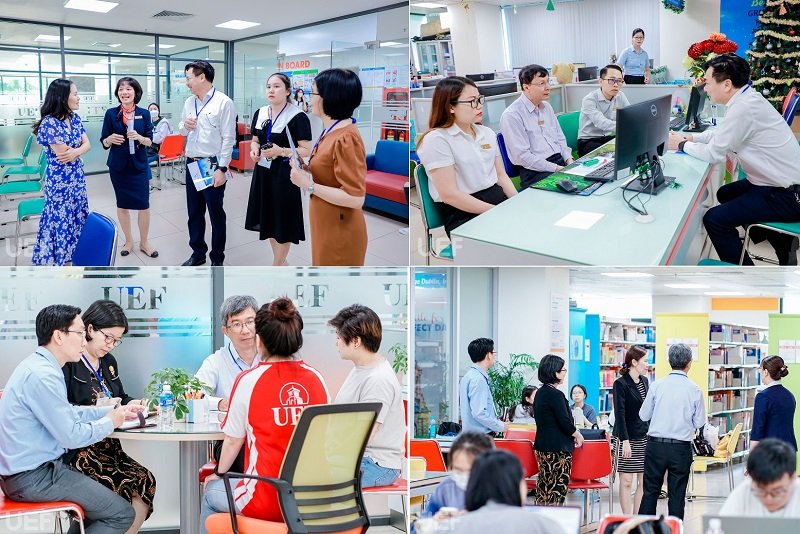 Trước đó, các thành viên Đoàn đánh giá ngoài đã tham quan, khảo sát văn phòng làm việc, phòng học và các khu vực liên quan trong khuôn viên UEF.