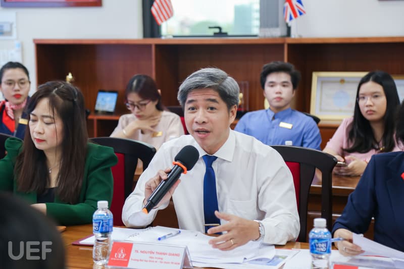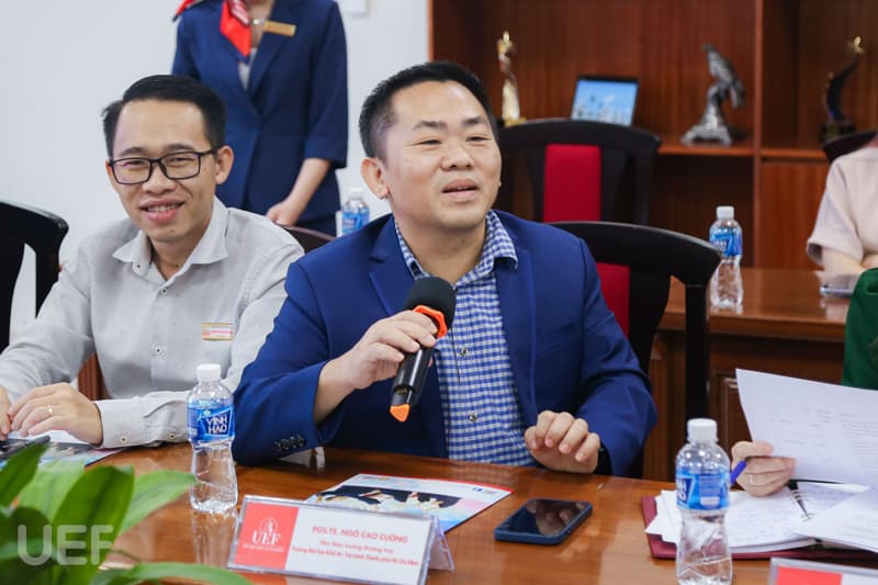 Về phía UEF có TS. Nguyễn Thanh Giang – Hiệu trưởng Nhà trường; PGS.TS. Ngô Cao Cường – Phó Hiệu trưởng thường trực; TS. Lý Thiên Trang – Phó Hiệu trưởng; TS. Lê Vũ Hương Giang – Giám đốc Trung tâm Bảo đảm chất lượng và Dự án quốc tế cùng lãnh đạo Khoa Ngôn ngữ và Văn hóa quốc tế, Khoa Quan hệ quốc tế, Viện Đào tạo sau đại học và Khoa học công nghệ.