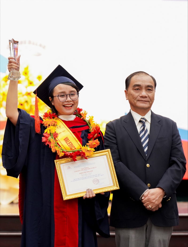 Để ghi nhận thành tích và nỗ lực của các cá nhân xuất sắc, UEF đã có nghi thức vinh danh các thủ khoa ngành Quản trị kinh doanh - Tân Thạc sĩ Cao Thị Hoài, thủ khoa ngành Tài chính - Ngân hàng - Tân Thạc sĩ Huỳnh Ngọc Trang, thủ khoa ngành Kế toán - Tân Thạc sĩ Nguyễn Văn Thanh và thủ khoa ngành Luật Kinh tế - Tân Thạc sĩ Quách Thụy Anh Khuê. Đây là phần thưởng quý giá và vinh dự cho các thạc sĩ có thành tích học tập vượt trội.