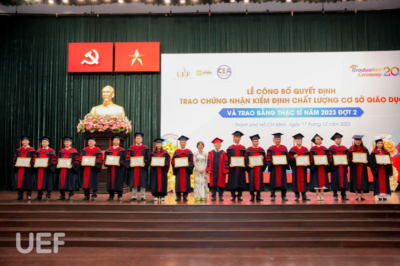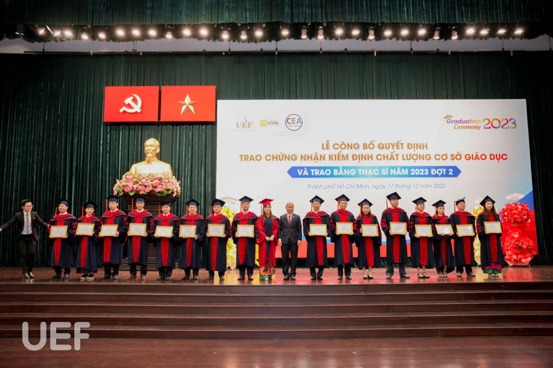 Cùng ngày, UEF cũng đã tổ chức thành công Lễ trao bằng thạc sĩ năm 2023 cho các học viên cao học. Một cột mốc mới trong hành trình học tập và nghiên cứu của các học viên đã khép lại với hành trang tri thức vững chắc.
