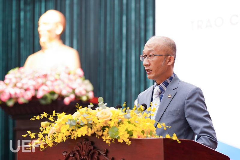 Trong phần diễn văn khai mạc buổi lễ, TS. Nguyễn Thanh Giang chia sẻ: “UEF từ ngày thành lập đã xác định sứ mạng đào tạo nguồn nhân lực chất lượng cao, đáp ứng nhu cầu xã hội và hội nhập quốc tế. Trong suốt 16 năm xây dựng và phát triển, Nhà trường luôn kiên định với sứ mạng này, không ngừng nỗ lực phấn đấu đạt nhiều thành tích, xây dựng thương hiệu uy tín trong xã hội. Đối với UEF, bảo đảm chất lượng là một mảng công tác đặc biệt quan trọng, luôn được Nhà trường đầu tư và quan tâm. Bảo đảm chất lượng là một quá trình lâu dài, liên tục, không có điểm dừng, không có điểm cuối. Tập thể UEF đều cùng nhau xây chất lượng cho UEF và đã có được những thành tích đáng ghi nhận”.