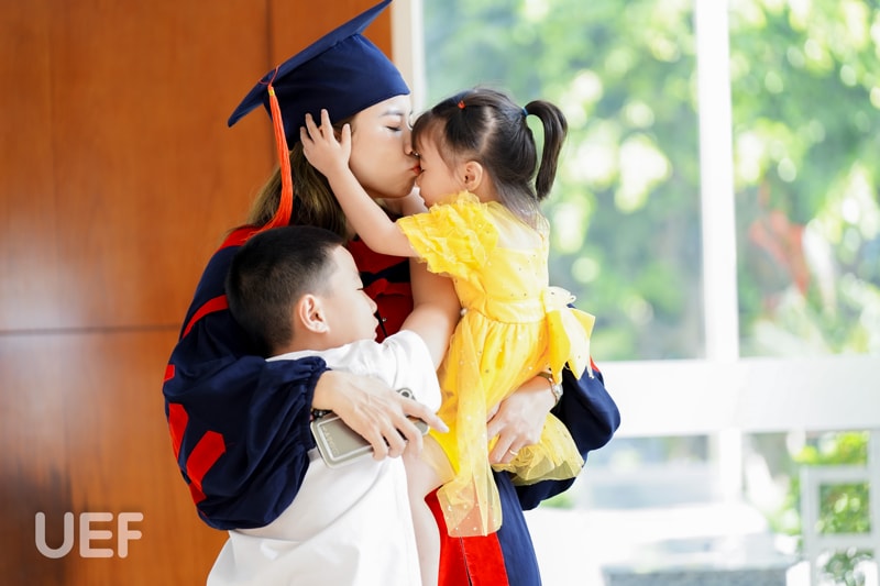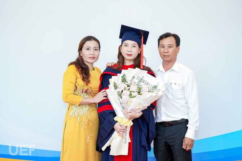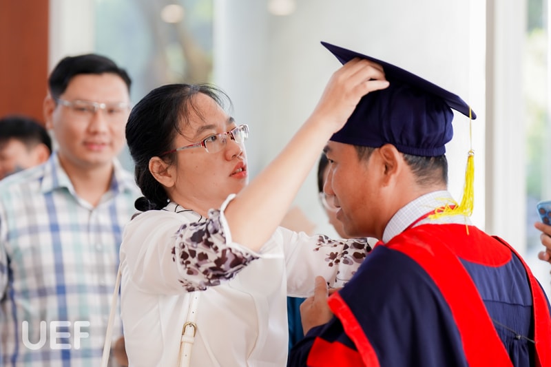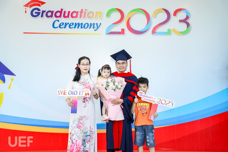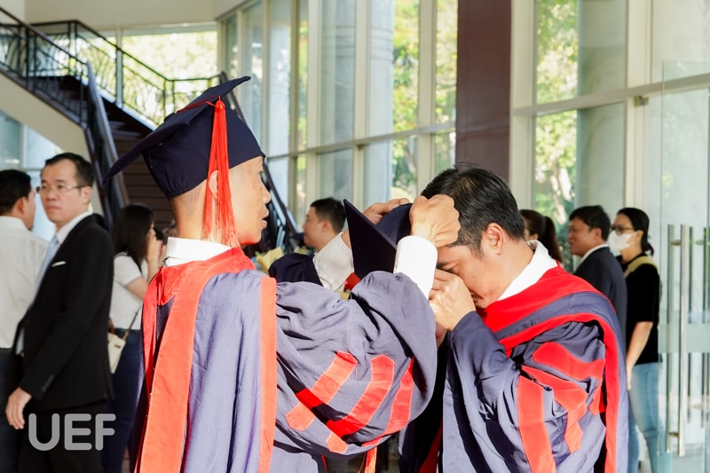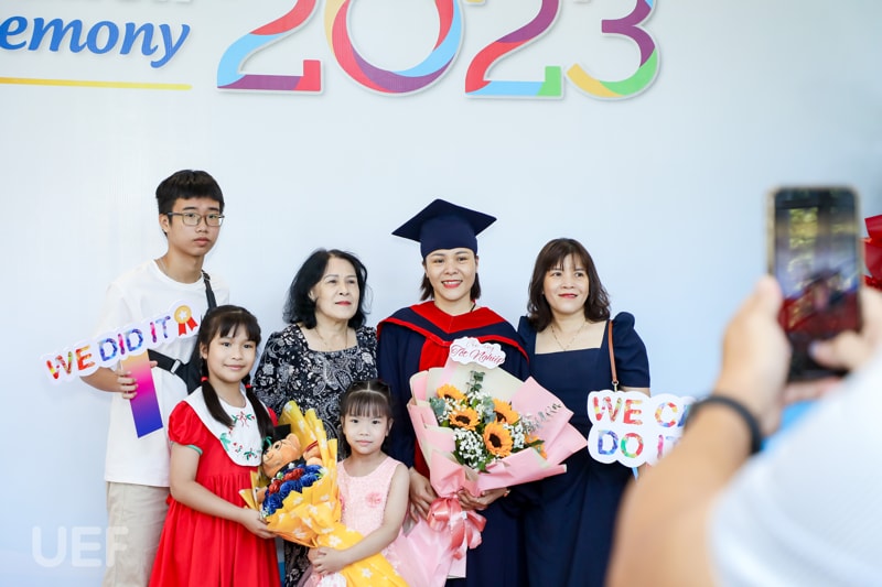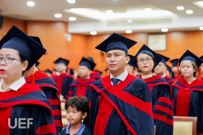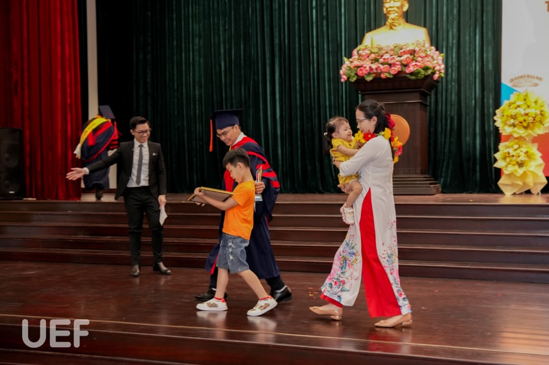 Thầy cô, gia đình, bạn bè của các tân Thạc sĩ đã có mặt tại địa điểm tổ chức từ rất sớm chỉ để mong nhìn thấy người thân mình rạng rỡ cầm tấm bằng trên tay. Niềm vui được lan tỏa khắp Hội trường, hiển hiện trên khóe mắt, nụ cười của ông bà, ba mẹ, vợ chồng, con cái,... của các anh, chị. Riêng các thầy cô Nhà UEF cũng bùi ngùi, lưu luyến khi lại chia tay một thế hệ học viên đầy nhiệt huyết với tinh thần nghiên cứu tích cực.