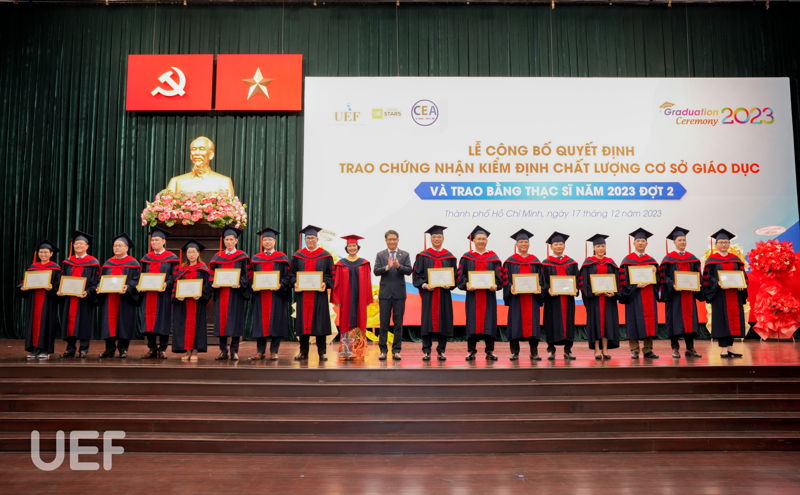 Hành trình kiên trì và nỗ lực của tập thể Nhà UEF đã thu về thêm thành quả mới - Nhà trường đã được trao Chứng nhận kiểm định chất lượng cơ sở giáo dục chu kỳ 2, đồng thời tổ chức thành công Lễ trao bằng thạc sĩ năm 2023. Trong giờ phút ý nghĩa ấy, nhiều khoảnh khắc đặc biệt đã được ghi lại, thể hiện rõ niềm tự hào, hạnh phúc của đại gia đình UEF cùng cá nhân các thạc sĩ, gia đình, bè bạn.