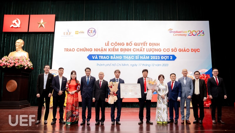 Sáng ngày 17/12, tại Hội trường Thành phố, UEF đón nhận Chứng nhận kiểm định chất lượng cơ sở giáo dục chu kỳ 2 từ Trung tâm Kiểm định chất lượng giáo dục - Đại học Quốc gia Thành phố Hồ Chí Minh (CEA VNU-HCM) sau 3 tháng kể từ đợt kiểm định chính thức diễn ra vào tháng 9/2023.
