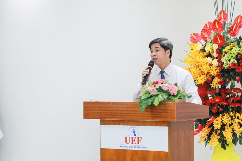 Tiếp đó, TS. Nguyễn Thanh Giang – Hiệu trưởng UEF đã có phần giới thiệu tổng quan về UEF trong suốt hành trình 12 năm phát triển. Trong đó nêu bật các đặc điểm về chức năng nhiệm vụ, công tác đào tạo, quy mô phát triển, công tác nhân sự, hoạt động khoa học công nghệ,… của Nhà trường. TS. Nguyễn Thanh Giang nhấn mạnh đào tạo gắn kết với doanh nghiệp, chú trọng kỹ năng và ngoại ngữ cho sinh viên là hai đặc điểm nổi bật trong hoạt động đào tạo của UEF.