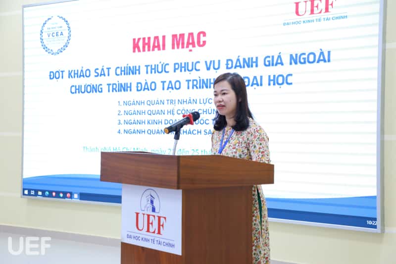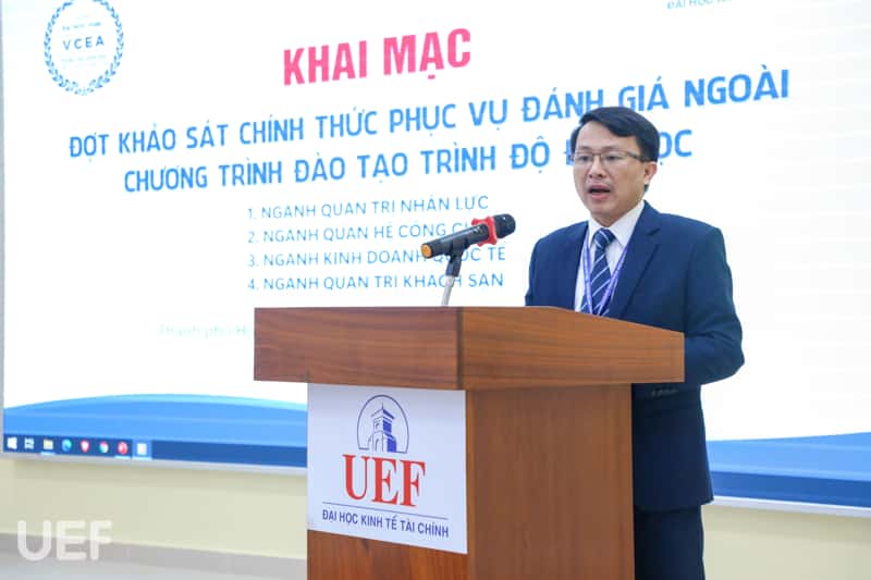 Phát biểu tại Lễ khai mạc, PGS.TS. Mai Văn Chung – Phó Giám đốc VCEA, Thư ký Đoàn đánh giá ngoài gửi lời cảm ơn UEF đã tin tưởng lựa chọn VCEA là đơn vị kiểm định chất lượng chương trình đào tạo cho Nhà trường. Đồng thời nhấn mạnh, Đoàn đánh giá ngoài sẽ làm việc nghiêm túc, độc lập, khách quan, công khai minh bạch theo đúng quy định và quy trình để đánh giá chính xác nhất chất lượng chương trình đào tạo của 4 ngành.