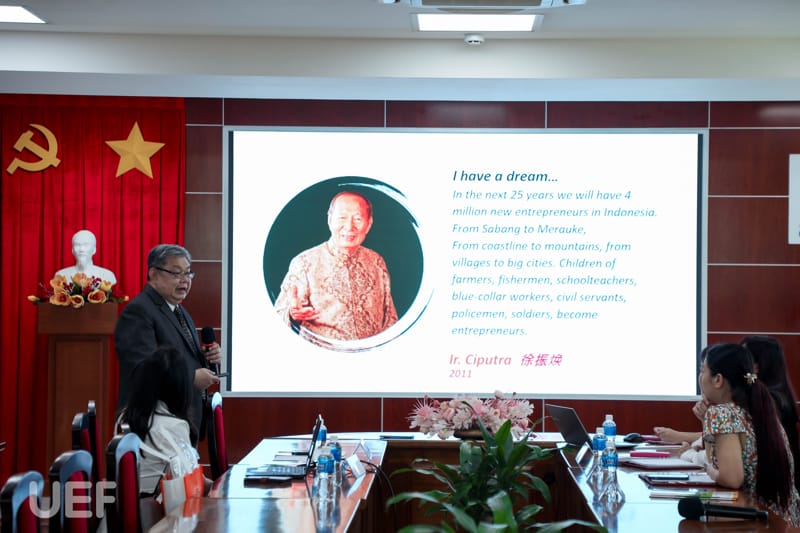Đại diện Universitas Ciputra, Hiệu trưởng Yohannes Somawiharja đã giới thiệu thông tin khái quát về trường, cơ sơ học tập và các hoạt động nổi bật.