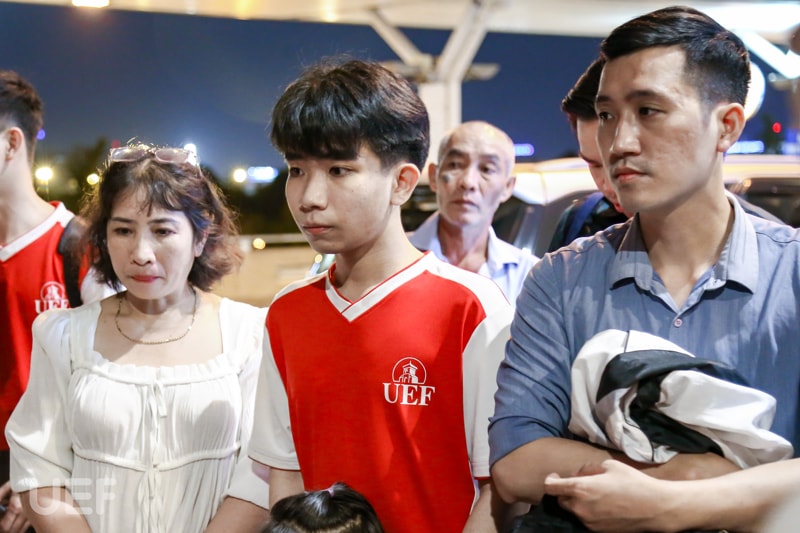 Đến tạm biệt, động viên sinh viên tại sân bay có ThS. Huỳnh Quốc Phong - Giám đốc Trung tâm Hợp tác doanh nghiệp UEF, ThS. Cao Đỗ Quyền - Trợ lý ngành Ngôn ngữ Nhật UEF cùng gia đình, người thân của các bạn.
