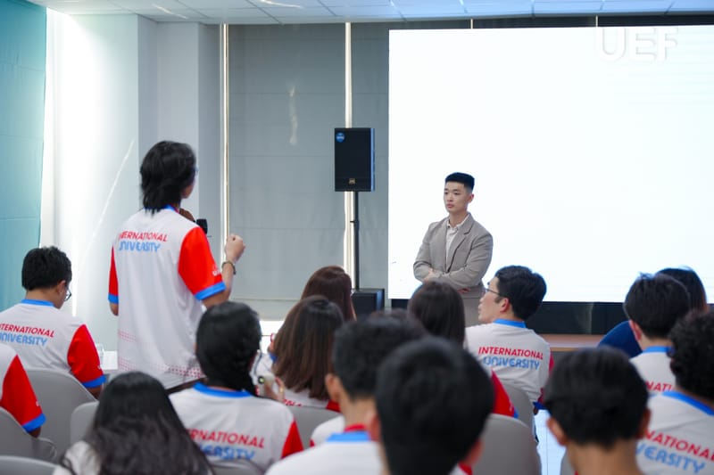 Trước khi tham quan các khu vực, đại diện CT Group đã chia sẻ thông tin về hệ sinh thái các công ty con thuộc tập đoàn. Nhiều bạn trẻ cũng chủ động trao đổi, đặt câu hỏi và bày tỏ sự quan tâm sâu sắc đến các ứng dụng thực tiễn cũng như cơ hội phát triển trong tương lai ở lĩnh vực công nghệ.