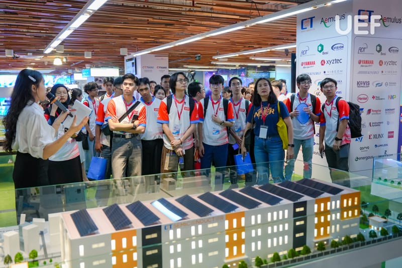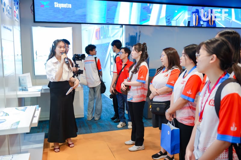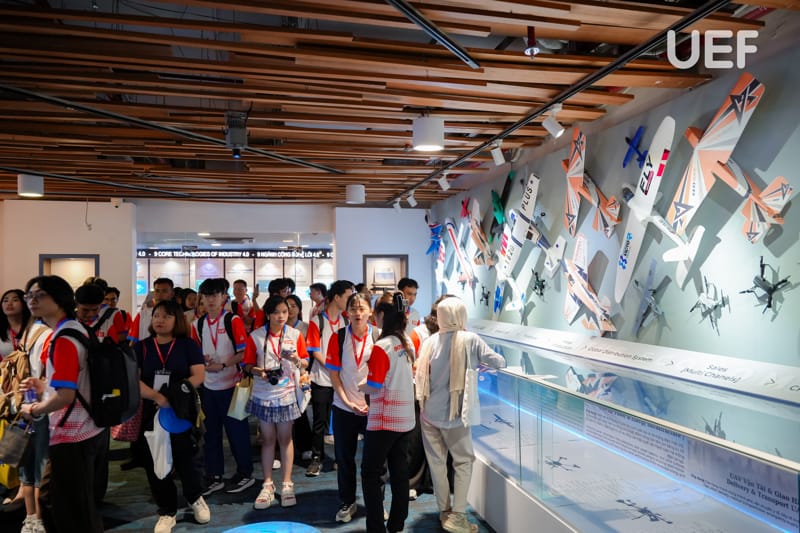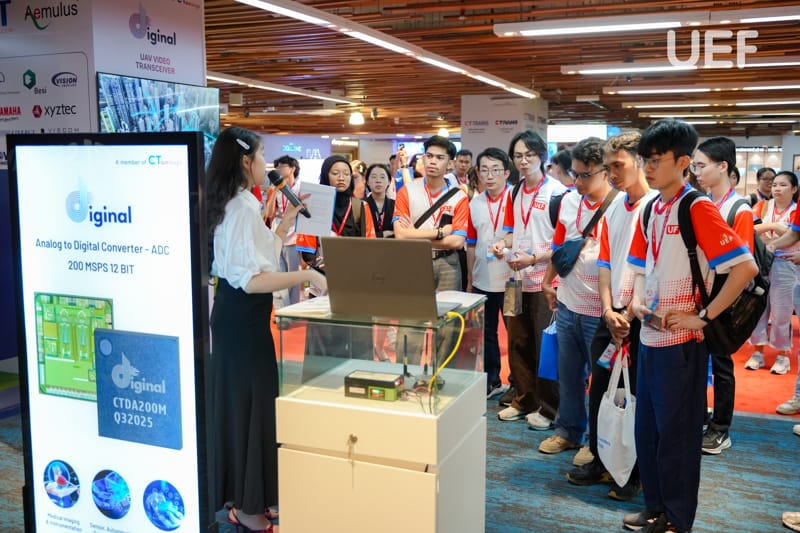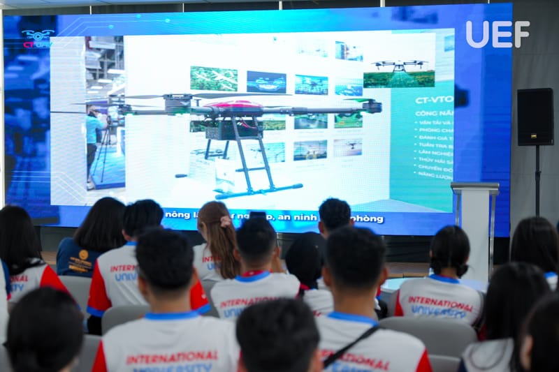 Trong suốt chuyến tham quan, các bạn sinh viên thể hiện sự hào hứng và quan tâm đặc biệt đến hệ sinh thái công nghệ đa lĩnh vực của CT Group, từ UAV, chip bán dẫn đến bản sao số quốc gia…