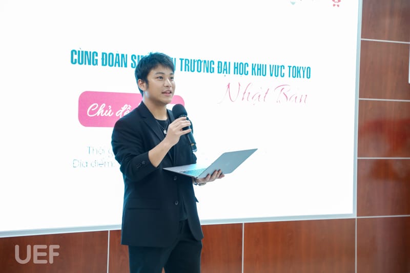 Chiều 7/3, Khoa Ngôn ngữ và Văn hóa quốc tế UEF đã có buổi đón tiếp đoàn sinh viên các trường đại học ở Tokyo - Nhật Bản. Trong buổi giao lưu, các bạn sinh viên được chia nhóm, thảo luận và trình bày dự án khởi nghiệp đã chọn trước đó.