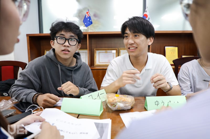 Tại buổi gặp gỡ, 9 bạn sinh viên Nhật Bản cùng sinh viên UEF đã giao lưu theo nhóm, khảo sát và đặt câu hỏi về chủ đề khởi nghiệp. Đây là dự án sinh viên Nhật Bản muốn thực hiện tại thị trường Việt Nam.