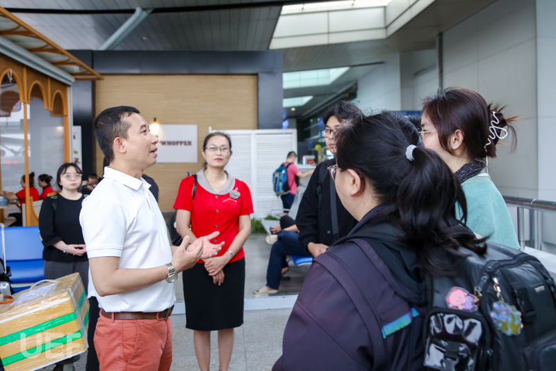 Trước khi máy bay cất cánh, thầy cô đã dặn dò sinh viên kỹ lưỡng. Từ việc kiểm tra lại vé máy bay, các giấy tờ quan trọng cho đến việc chuẩn bị tâm lý để thích nghi với điều kiện sống mới. Thầy, cô cũng động viên và nhắc nhở các bạn phải đoàn kết, giúp đỡ hỗ trợ lẫn nhau cùng thực tập, phát triển. Phải nắm rõ các đầu mối liên lạc quan trọng khi gặp vấn đề khó khăn không giải quyết được. Sau cùng, UEFers nhận được những lời chúc tốt đẹp và mong đợi ngày trở về từ thầy cô UEF và gia đình các bạn.