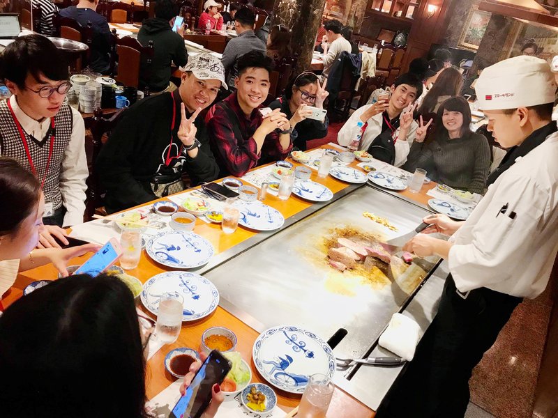 Các bạn thích thú thưởng thức món thịt bò nướng Kobe trứ danh