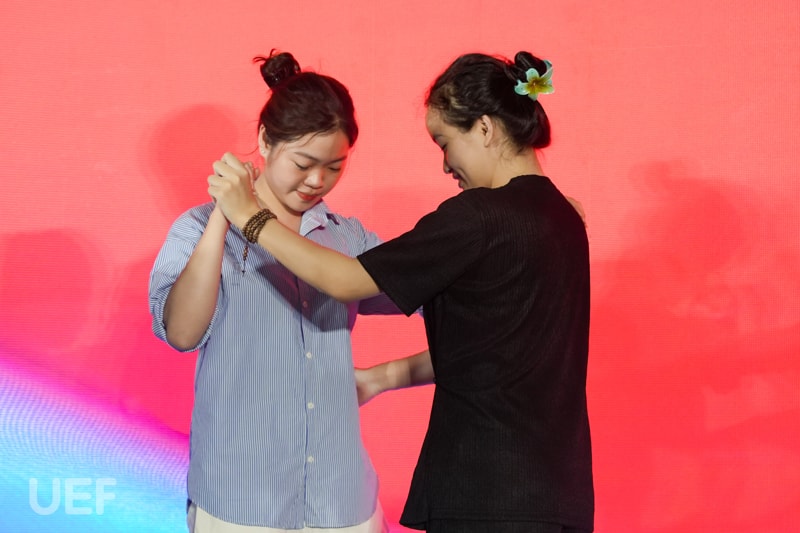 Đặc biệt, UEFers đã được thỏa sức khám phá, học tập những bước nhảy Tango cùng nghệ sĩ quốc tế. Các bạn được trực tiếp hướng dẫn từ các nghệ sĩ này và bắt đầu di chuyển những bước cơ bản cũng như nắm được các nguyên tắc khi nhảy điệu Tango.