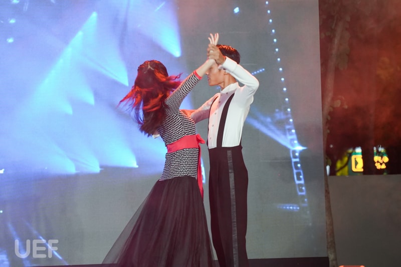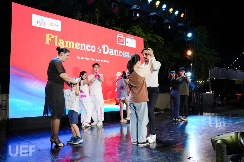 Với môi trường quốc tế hiện đại, UEF luôn thu hút bạn bè trên thế giới đến giao lưu trải nghiệm từ học thuật, thể thao đến văn hóa nghệ thuật. Sau hàng loạt các hoạt động giao lưu văn hóa và học thuật với giảng viên, sinh viên Mỹ, Pháp,... các thành viên Nhà UEF đã có dịp chìm đắm trong không gian nghệ thuật lãng mạn, màu sắc và đầy sôi động từ các vũ công quốc tế. Friendship show với chủ đề “Flamenco and Dances” diễn ra vào tối 6/6 vừa qua quy tụ nhiều nhóm nhảy đến từ Tây Ban Nha, Mỹ Latinh, các nghệ sĩ nhảy nổi tiếng cùng câu lạc bộ sinh viên UEF đã cùng tạo nên bữa tiệc âm nhạc ấn tượng. Chương trình vừa góp phần nâng cao tinh thần hữu nghị giữa Việt Nam và các nước bạn, vừa xây dựng không gian giao lưu nghệ thuật quốc tế hóa cho sinh viên Nhà trường.