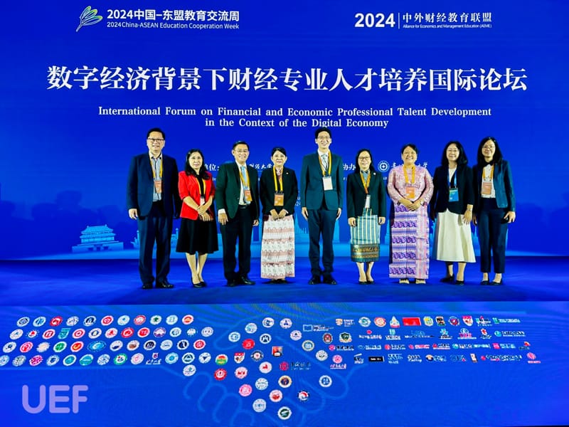 Đặc biệt, đại diện UEF đã tham dự diễn đàn về giáo dục đại học khối ngành kinh tế tài chính trong kỷ nguyên của trí tuệ nhân tạo do Trường Đại học Kinh tế - Tài chính Bắc Kinh tổ chức. Chương trình có sự tham dự của gần 100 đại biểu đến từ 60 trường đại học thuộc khối ngành kinh tế - tài chính ở Trung Quốc và các nước ASEAN. Tại đây, TS. Nhan Cẩm Trí đã có bài diễn thuyết về đề tài: "Service Learning - A Teaching Model That Help Learners to Get Awareness of Sustainable Development in the Context of AI".