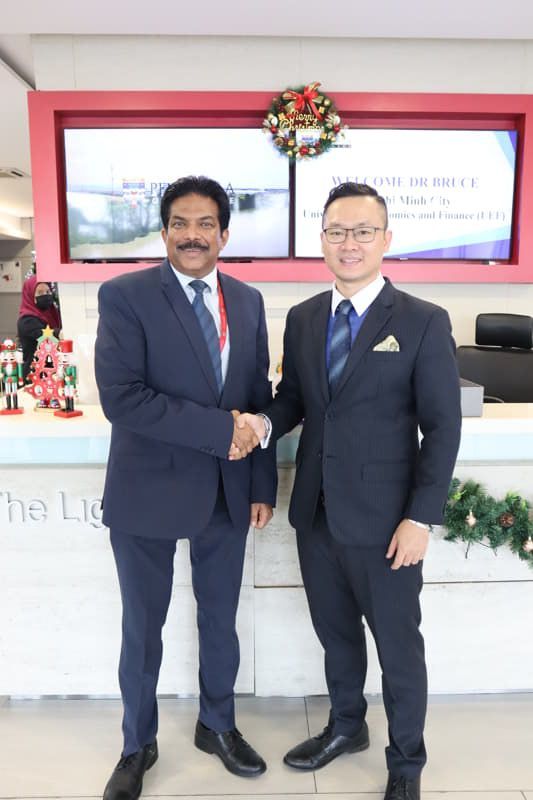 Đại diện đón tiếp UEF có TS. Michael Tio - CEO Tập đoàn PKT Logistics Group, Chủ tịch Peninsula College; ông Punithan Moganathas - Head of QAD and Collaborative Office; ông Edmund Edward - Chief Executive Officer và bà Ng Lai Quan - DGM Head of Sales and Marketing.