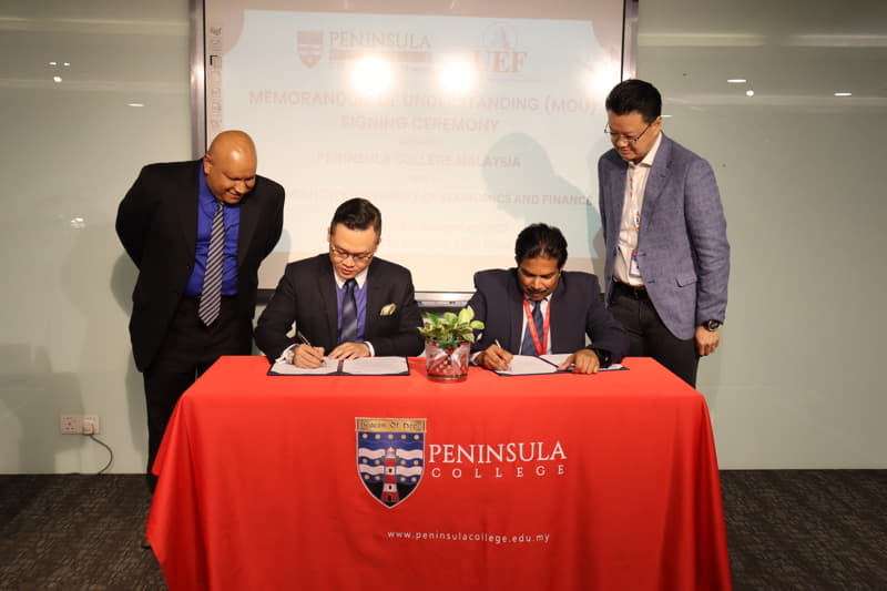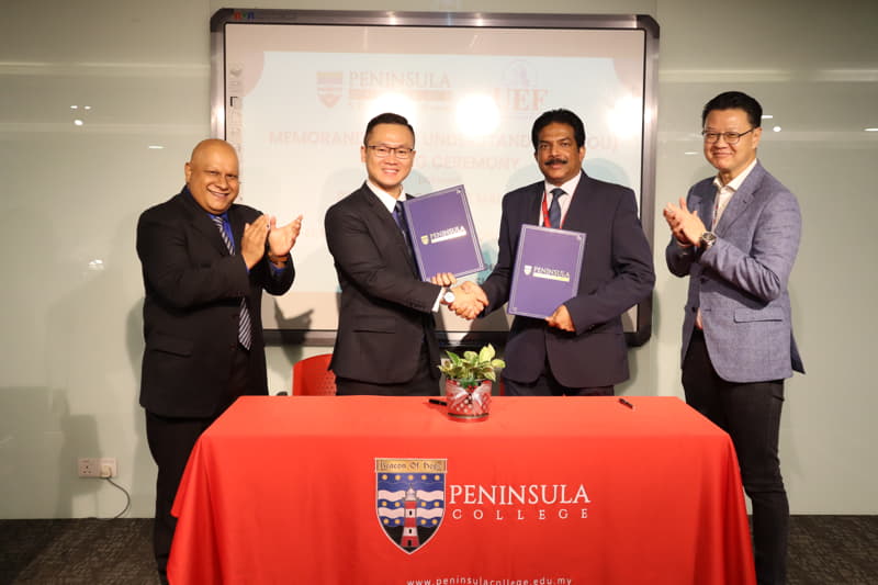 Sau chuyến công tác, làm việc tại UEF của các đại diện Peninsula College – Malaysia trong tháng 10, vào ngày 8/12, đại diện UEF, TS. Đỗ Hữu Nguyên Lộc – Phó Hiệu trưởng, Viện trưởng Viện Quốc tế đã có chuyến thăm và ký kết hợp tác với Peninsula College, triển khai các nội dung dành cho sinh viên chương trình Cử nhân Gloucestershire.