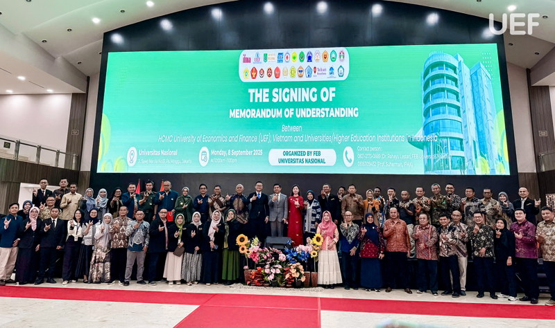Từ nền tảng ngoại giao đó, UEF liên tục đón tiếp sinh viên, giảng viên Indonesia đến học tập, giao lưu tại TP.HCM. Đặc biệt, tháng 11/2025, Nhà trường khởi động chương trình Global Immersion Program 2025 – “Indonesia & Vietnam: From Culture to Economics” với đoàn giảng viên, sinh viên đến từ Universitas Islam Negeri Syarif Hidayatullah Jakarta (UIN). Chương trình kết hợp các hoạt động học thuật về kinh tế – tài chính, tham quan hệ sinh thái khởi nghiệp tại SIHUB, doanh nghiệp số INBOLD, trải nghiệm văn hóa, đời sống Việt Nam từ TP.HCM đến Đồng bằng sông Cửu Long, Vũng Tàu,…
