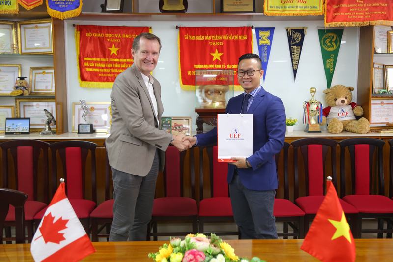 Trong chuyến thăm UEF, đại diện Đại học Vancouver Island gồm có ông Bruce Condie – Giám đốc Marketing quốc tế, ông Rasha Abu Ramdan – Đại diện trường tại ASEAN.
