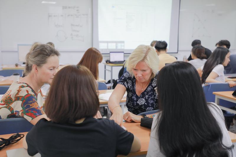 Buổi chiều cùng ngày, các giảng viên UCL đã tham dự lớp học để tìm hiểu sâu hơn về phương pháp giảng dạy và cách thức học tập của sinh viên UEF. Về môi trường học tập, cô Simonsen Dorthe bước đầu nhận thấy với cách dạy và học của UEF, sinh viên có cơ hội tương tác, tiếp nhận kiến thức cao. Điều này cũng khá giống với cách thức giảng dạy mà UCL đang áp dụng. Về sinh viên UEF, các bạn khá năng động, lớp học thân thiện, không khí lớp vui vẻ, tích cực.