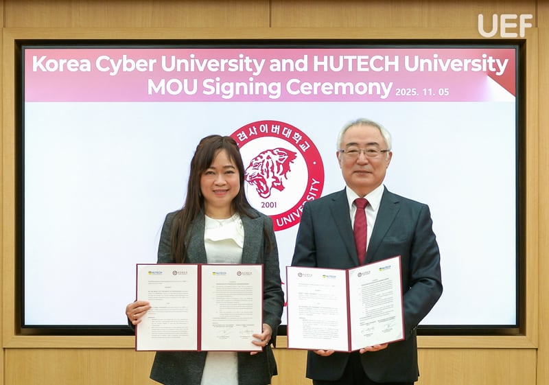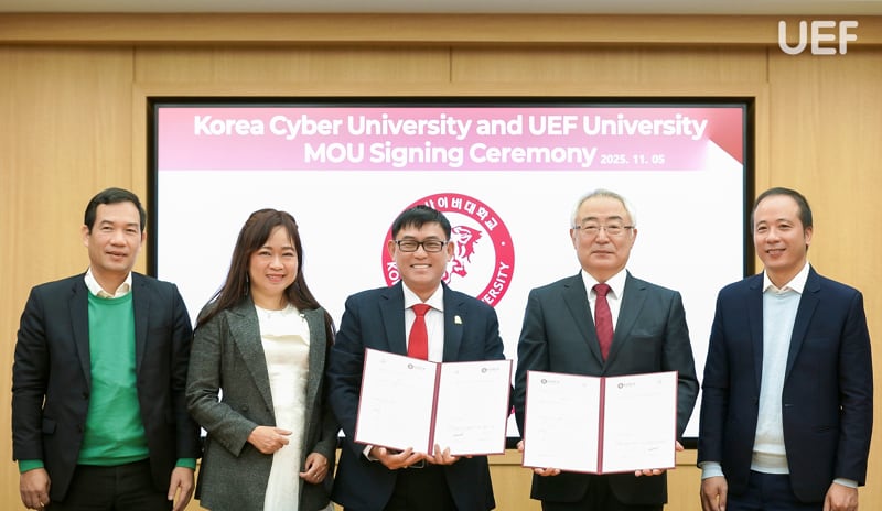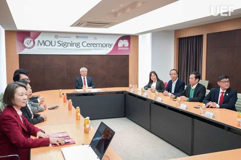 Đặc biệt, sáng 5/11, UEF ký kết Biên bản ghi nhớ (MOU) với Korea Cyber University, mở rộng hợp tác trong các hướng: trao đổi học thuật; các chương trình ngắn hạn – học kỳ quốc tế; kết nối thực tập và trải nghiệm nghề nghiệp tại Hàn Quốc. Đây là một bước tiến cụ thể hóa chiến lược đào tạo linh hoạt – đa phương thức của UEF, tăng cơ hội tiếp cận môi trường học thuật tiên tiến cho sinh viên và giảng viên.